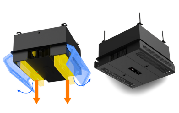 AeroShield CS Enhance your environment with our advanced ceiling air purifier, outperforming conventional air purification in both functionality and adaptability. Its sleek, user-friendly Ceiling design allows for various installation possibilities, providing quiet operation and optimal efficiency.